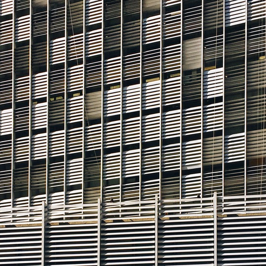 Sun control louvers are horizontal or vertical elements installed on building facades to regulate the amount of sunlight entering interior spaces. Louvers are typically made of materials such as aluminum, steel and composite panel can be fixed or adjustable to control the angle of sunlight penetration. Fixed louvers are stationary and set at a predetermined angle to provide consistent shading throughout the day. Adjustable louvers, also known as operable louvers, can be manually or automatically adjusted to optimize daylighting and minimize solar heat gain based on the sun's position and time of day. Sun control louvers help improve energy efficiency by reducing the need for artificial lighting and cooling, while also enhancing visual comfort for building occupants.