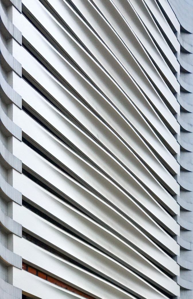 Fin systems, also called blade or fin wall systems, consist of vertical or horizontal fins attached to building facades to provide shading, privacy, and architectural interest. Fins are typically made of materials like aluminum, glass, or composite panels and can be oriented vertically or horizontally, depending on the desired shading effect and design aesthetic. Vertical fins are effective for reducing solar heat gain and glare on east and west-facing facades, while horizontal fins are suitable for shading south-facing facades from high-angle sun. Fin systems offer flexibility in design, allowing architects to create various patterns, sizes, and spacing of fins to achieve specific shading and visual effects. In addition to providing solar control, fin systems can also serve as architectural features that complement the overall design of the building facade.